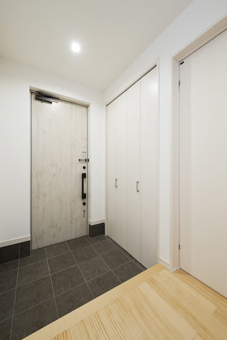 玄関収納をクローゼットにしました。スペースを広げて下まで使えるようにしました。